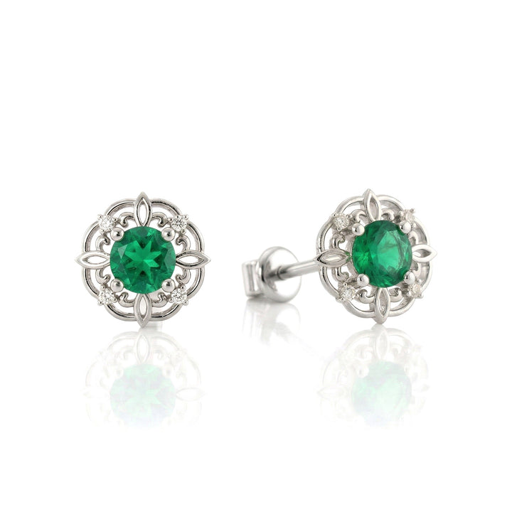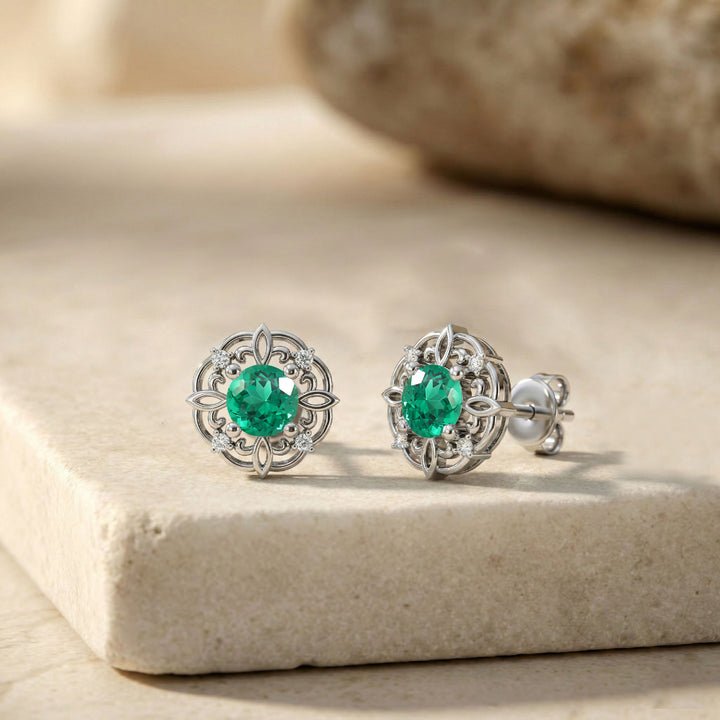 Emerald Round Stud Earrings in 925 Sterling Silver 3 MM 1.20ct