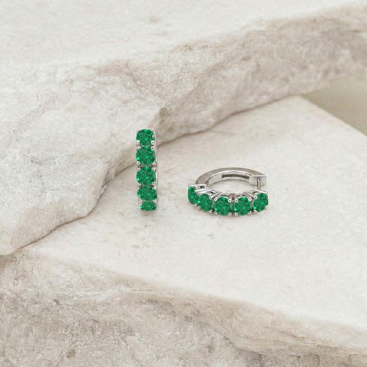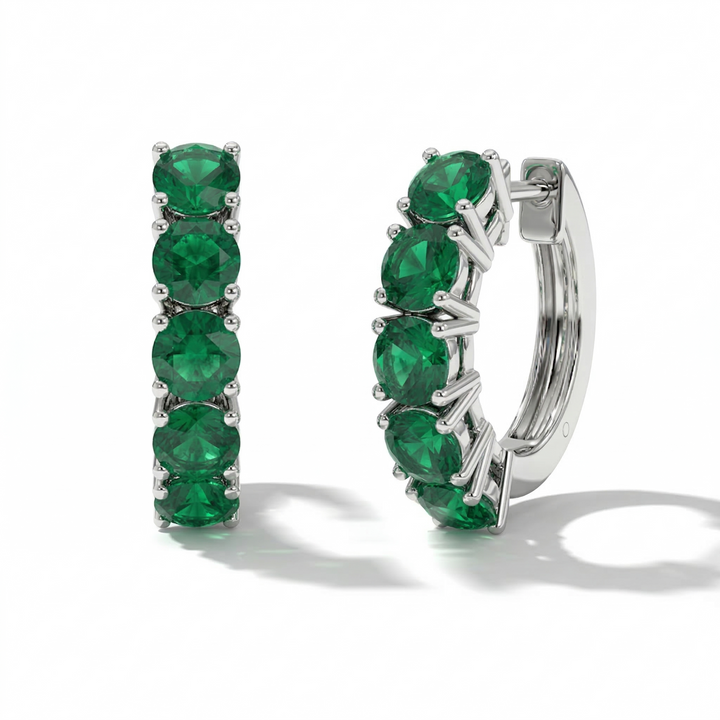 Emerald Round Hoop Earrings in 925 Sterling Silver 3MM 3ct