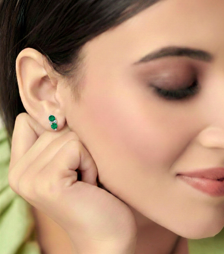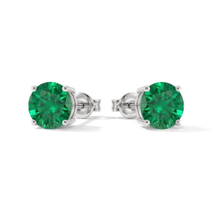Emerald Round and Oval Stud Earring in 925 Sterling Silver 6 MM 5-ct.