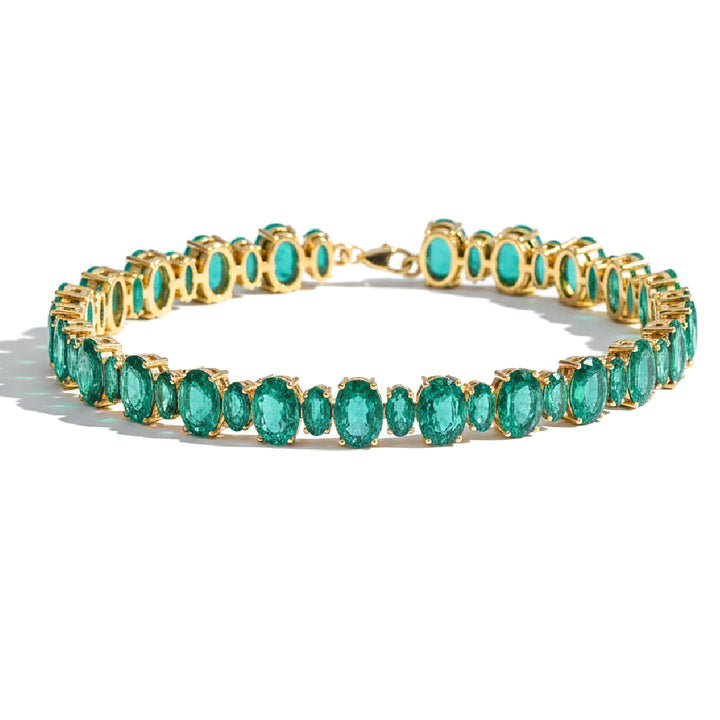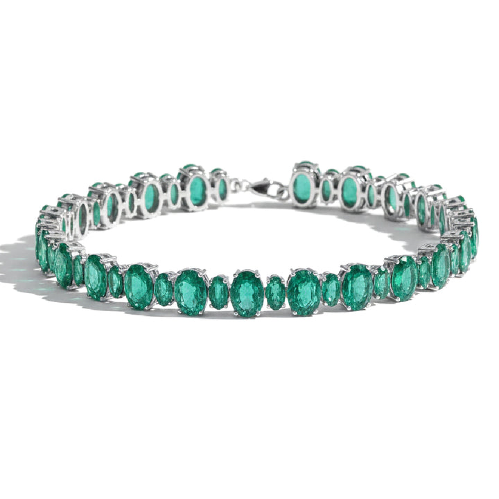 Emerald Oval Tennis Bracelet in 925 Sterling Silver 7x5 MM 34.50ct