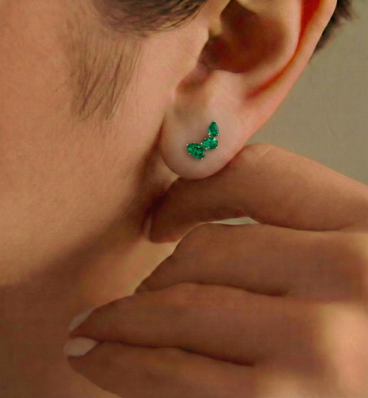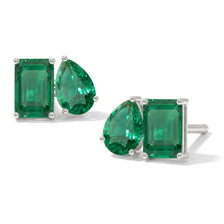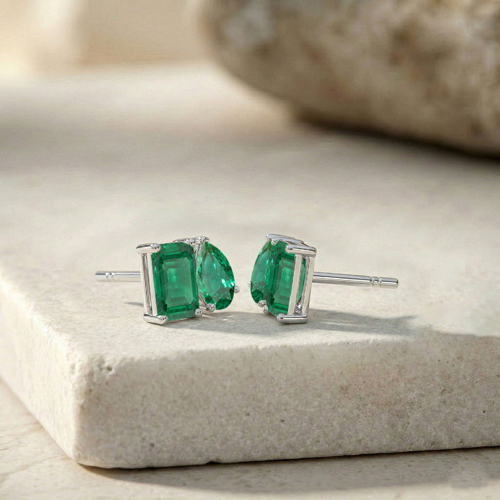 Emerald Pear and Octagon Stud Earrings in 925 Sterling Silver 6*4MM 2ct