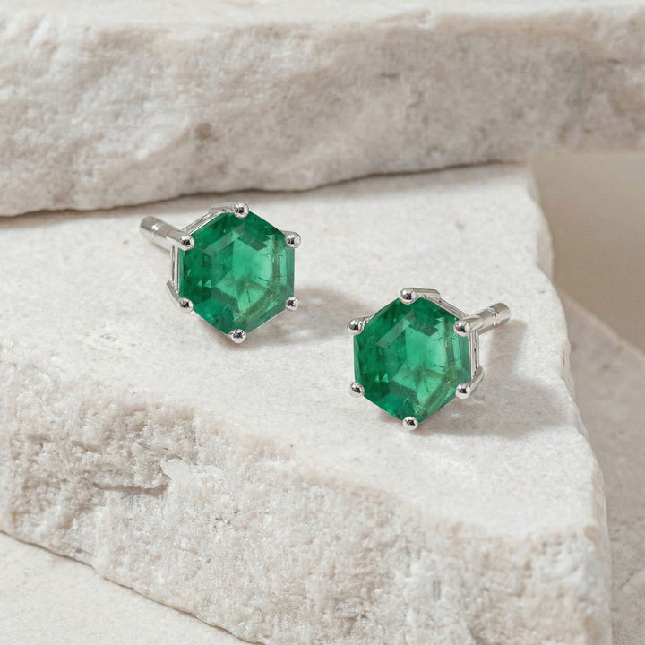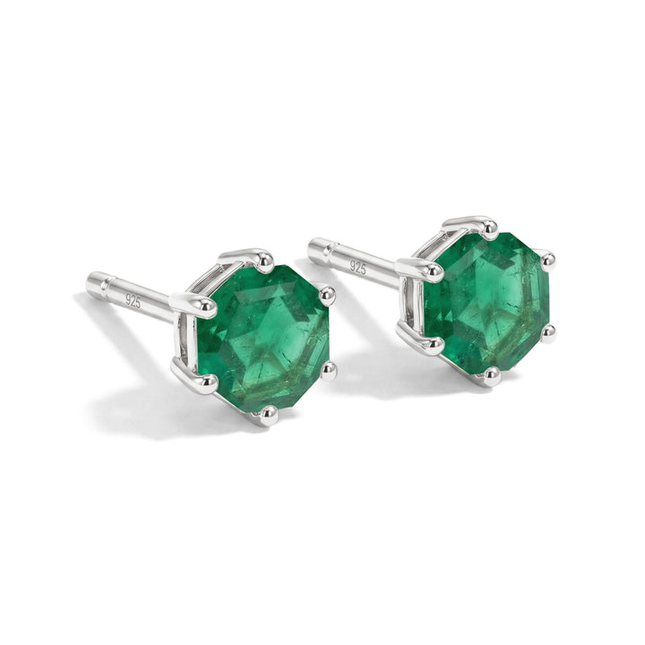 Emerald Hexagon Stud Earring in 925 Sterling Silver 6 MM 2ct