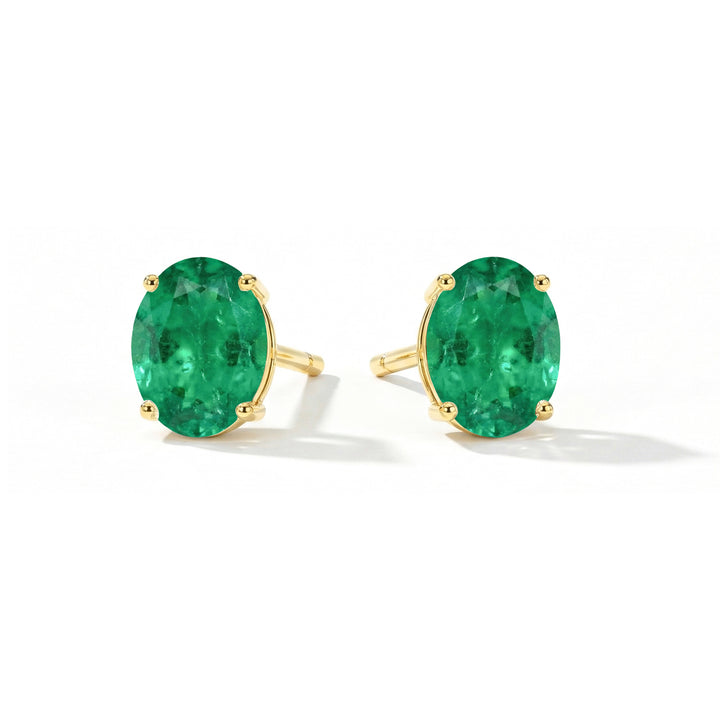Emerald Oval Solitaire Stud Earrings in 925 Sterling Silver 5.35ct