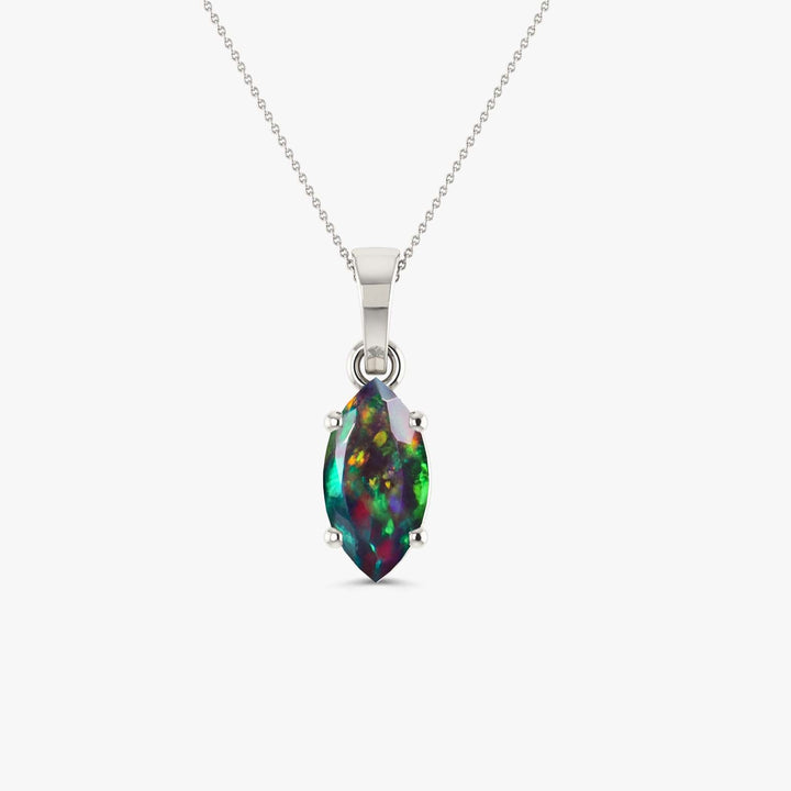 Natural Black Opal Solitaire Chain Pendant Necklace