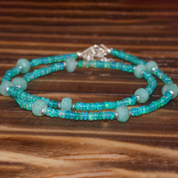 Natural Green Opal with Turquoise Bead Strand Necklace