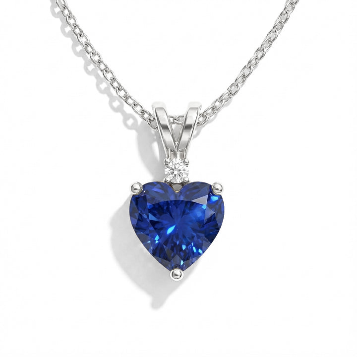 Blue Sapphire Heart Pendant Necklace in 925 Sterling Silver 1.5ct