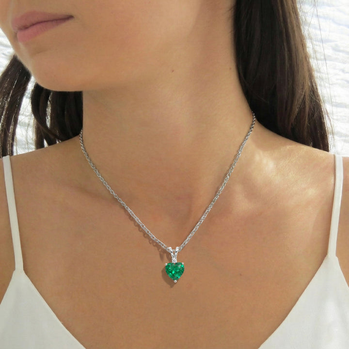 Emerald Heart Pendant Necklace in 925 Sterling Silver 1.5ct