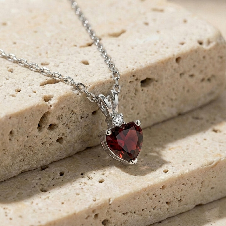Natural Garnet Heart Pendant Necklace in 925 Sterling Silver 1.5ct
