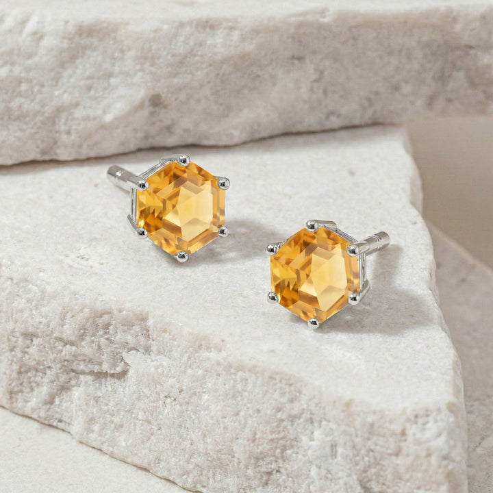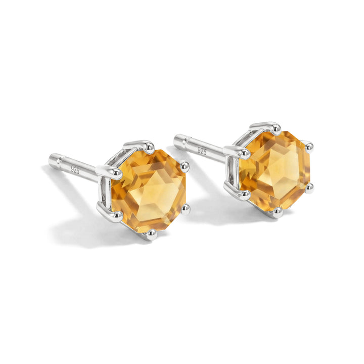 Citrine Hexagon Stud Earring in 925 Sterling Silver 6 MM 2ct