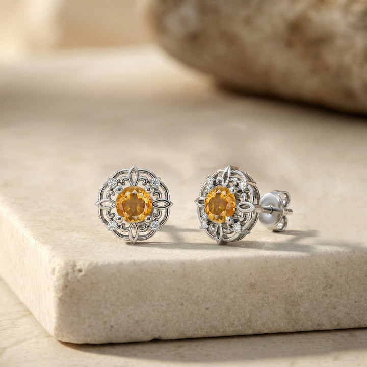 Citrine Round Halo Stud Earrings in 925 Sterling Silver 5 MM 1.3ct