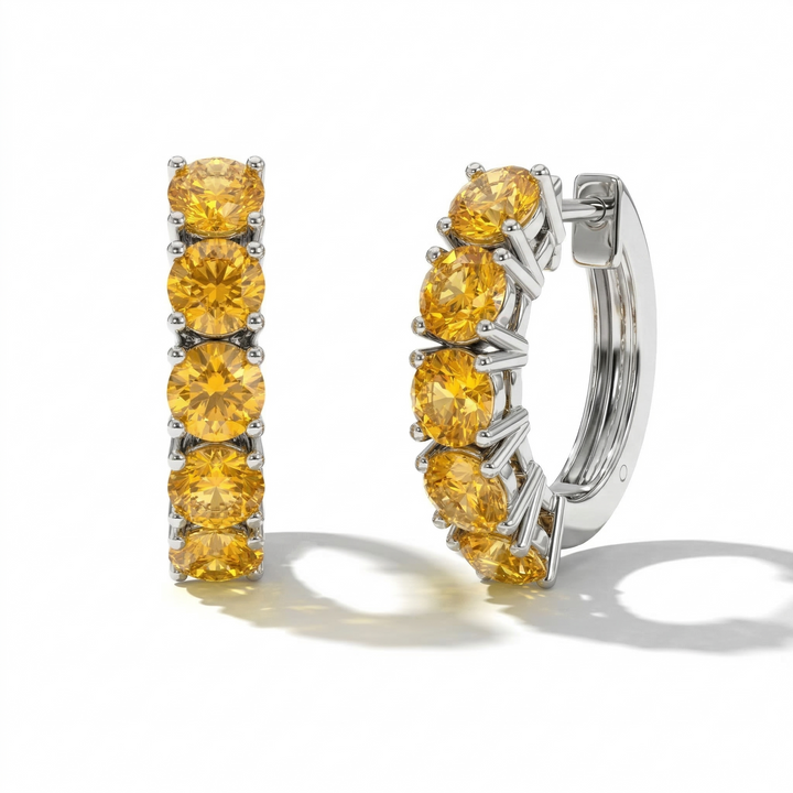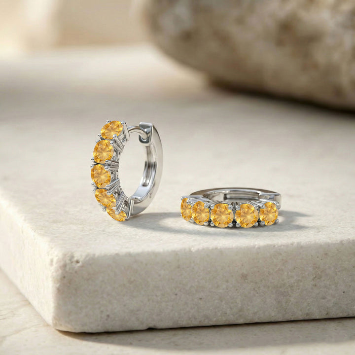 Citrine Round Hoop Earrings in 925 Sterling Silver 3MM 3ct