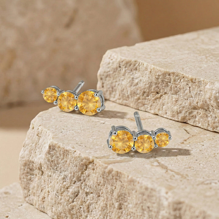 Citrine Round Stud Earrings in 925 Sterling Silver 3 MM 1.20ct