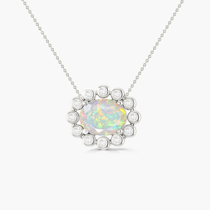 Elegant 925 Silver White Opal Oval Halo Pendant Necklace, 1.20 Ct Sale price$55.30 USD Regular price$79.00 USD