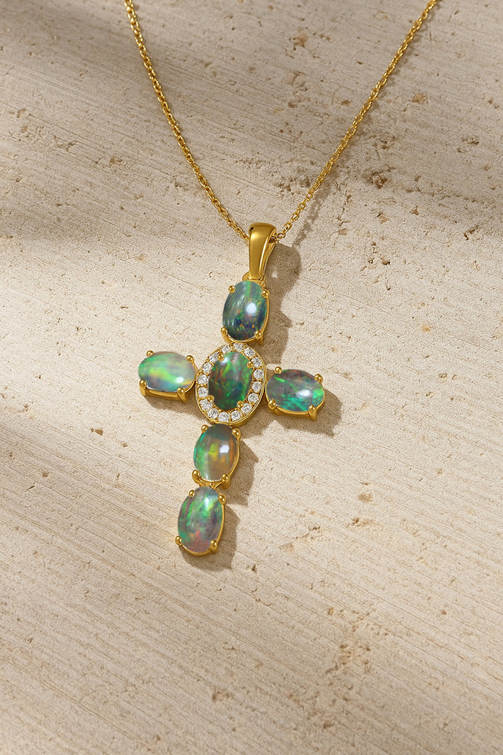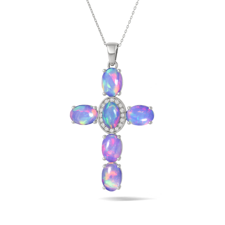 White Opal Oval Holy Cross Pendant Necklace in 925 Sterling Silver Sale price$62.30 USD Regular price$89.00 USD