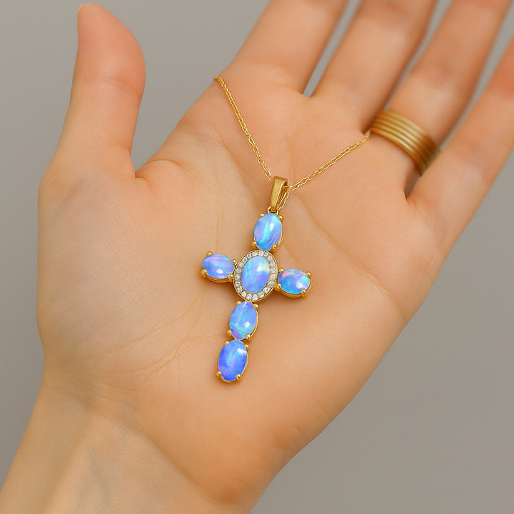 Blue Opal Oval Holy Cross Pendant Necklace in 925 Sterling Silver Sale price$62.30 USD Regular price$89.00 USD