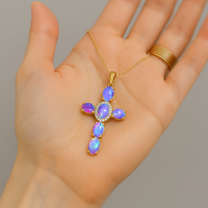 Lavender Opal Oval Holy Cross Pendant Necklace in 925 Sterling Silver Sale price$62.30 USD Regular price$89.00 USD