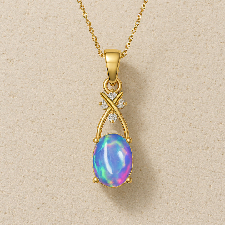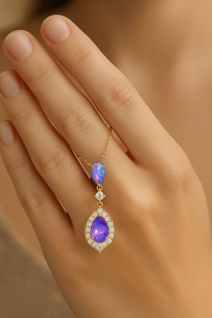 • Teardrop Opal October Birthstone Pendant – Elegant Classic