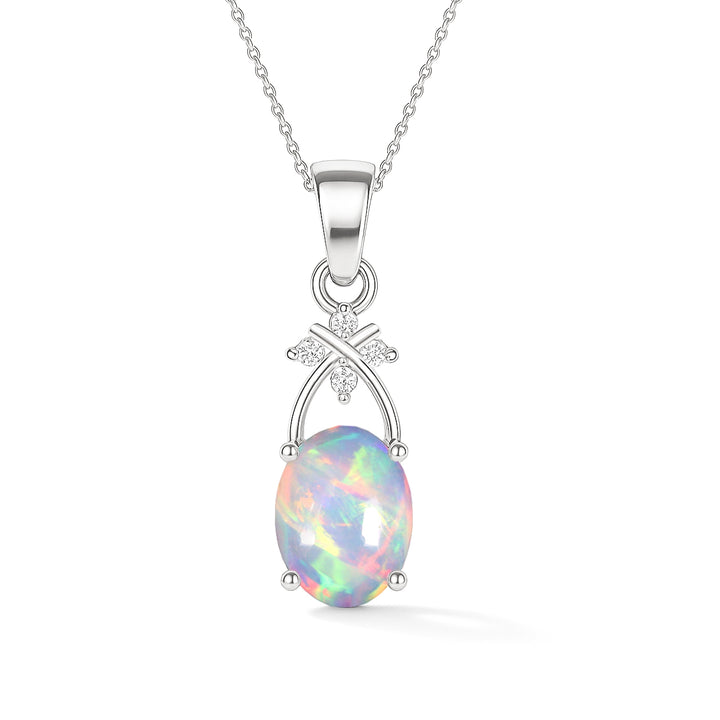 Elegant White Opal Oval Pendant Necklace in 925 Sterling Silver 1.20 Ct Sale price$51.10 USD Regular price$73.00 USD