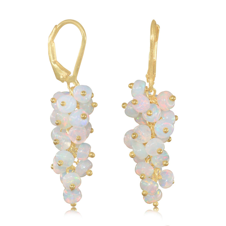 Yellow Opal Earrings - Round Bead Cluster Design