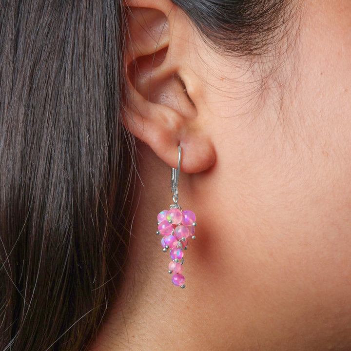 Pink Opal Cluster Earrings for Her