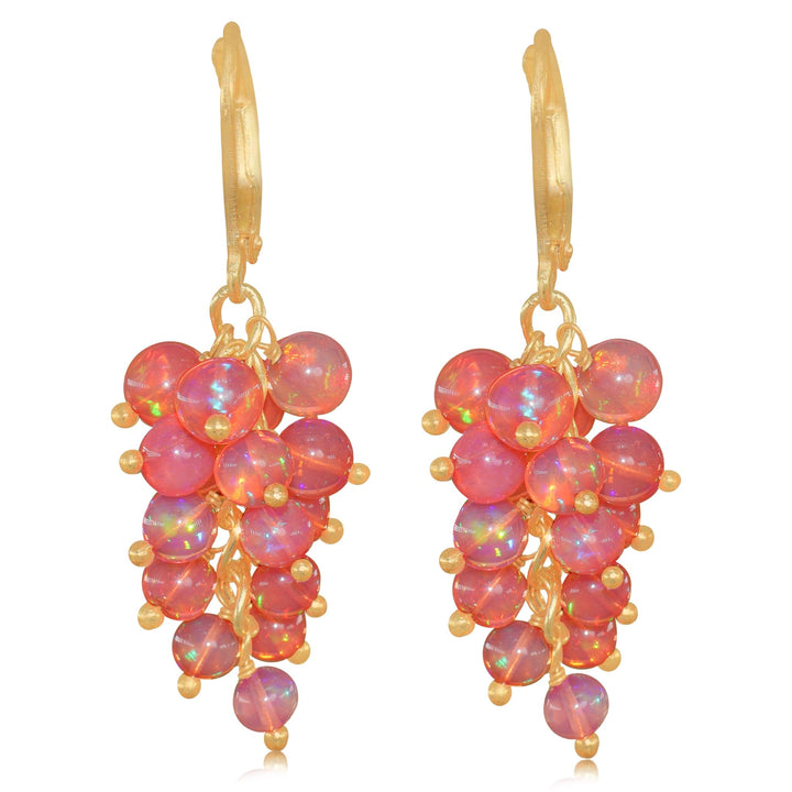 Red Opal Beads Cluster Earrings for Her