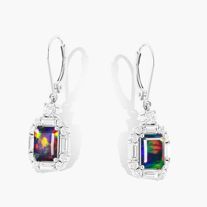 Black Opal Octagon Gemstone Drop and Drop Earring