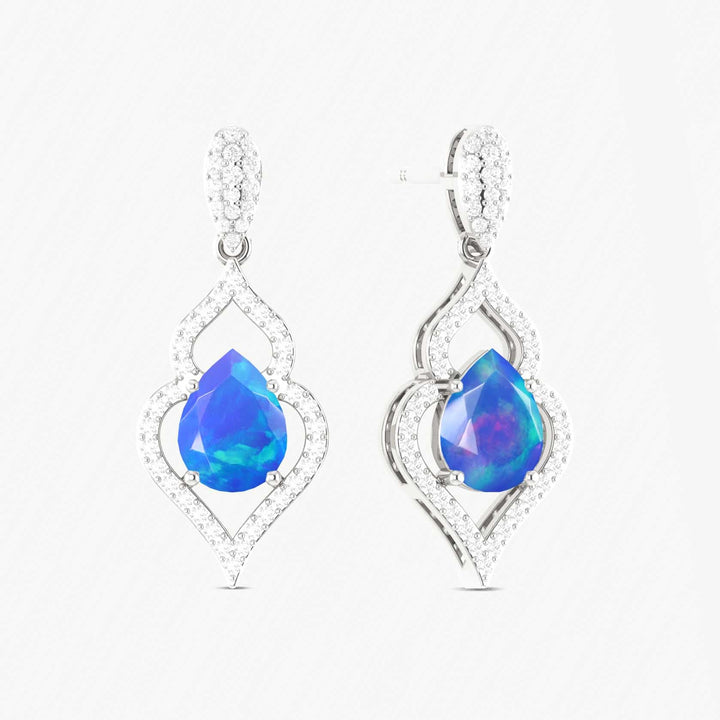 Blue Dual Opal Pear Drop Stud Earrings