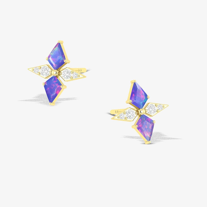 Lavender Opal Dual Kite Gemstone Floral Stud Earrings