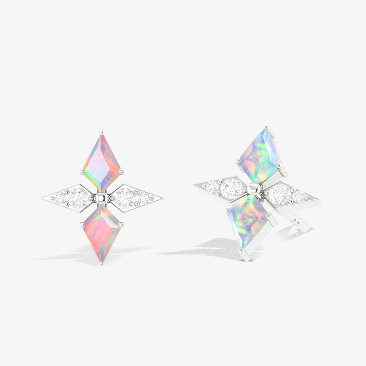 White Opal Dual Kite Gemstone Floral Stud Earrings