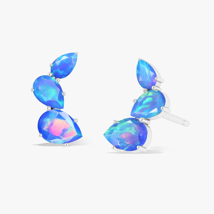Fire Blue Opal Three Stone Stud Earrings