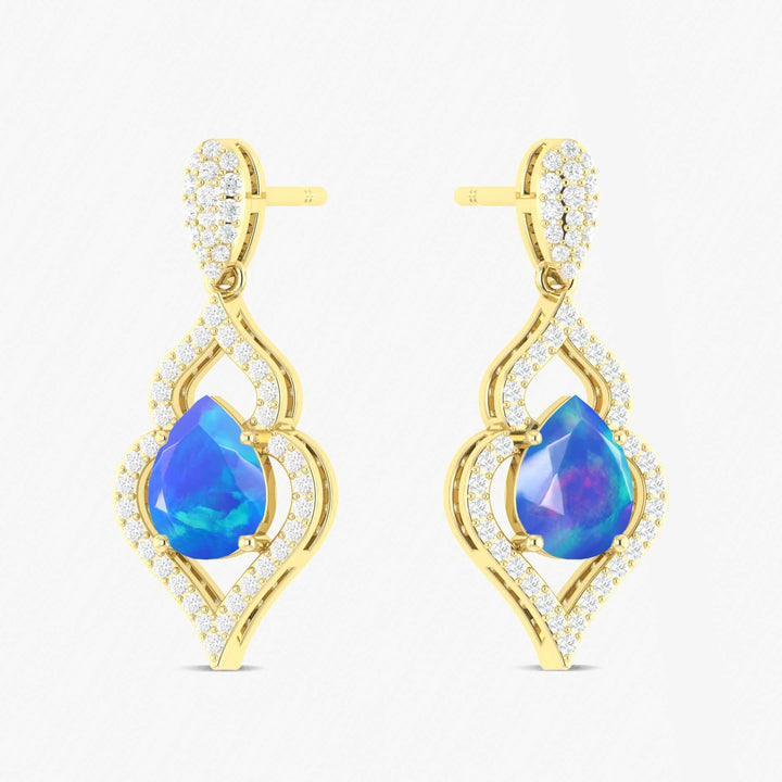 Blue Ethiopian Opal Pear Design Stud Earring