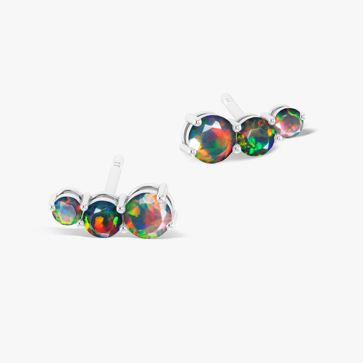 Fire Black Opal Three Stone Stud Earrings