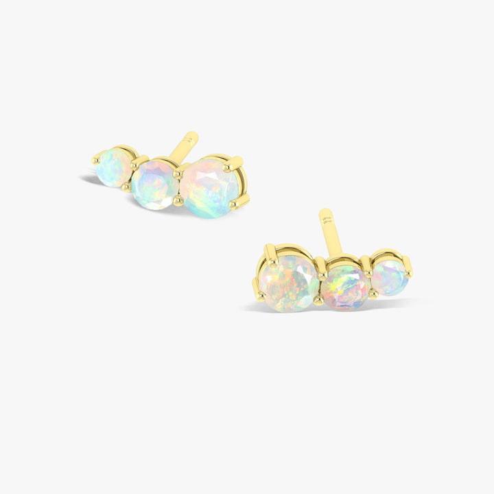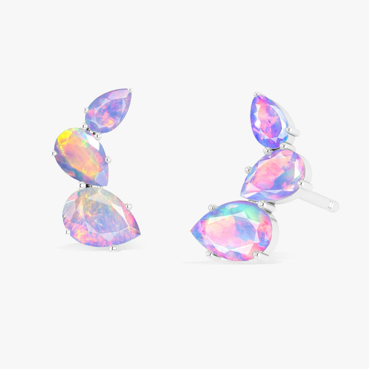 Fire White Opal Three Stone Stud Earrings