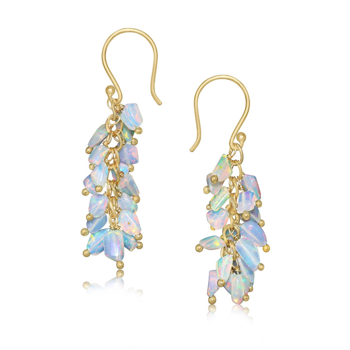 Sky Blue fire Ethiopian opal beaded chain cluster earrings