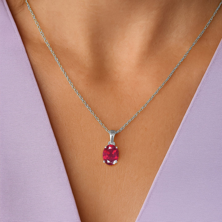 Ruby Solitaire Pendant Necklace in 925 Sterling Silver 9x7 MM 1.4ct