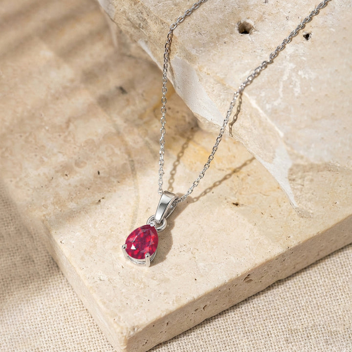 Ruby Pear Solitaire Teardrop Pendant Necklace in 925 Sterling Silver 9x7 MM 1.4ct