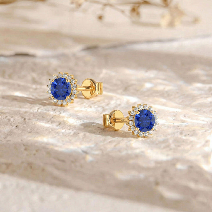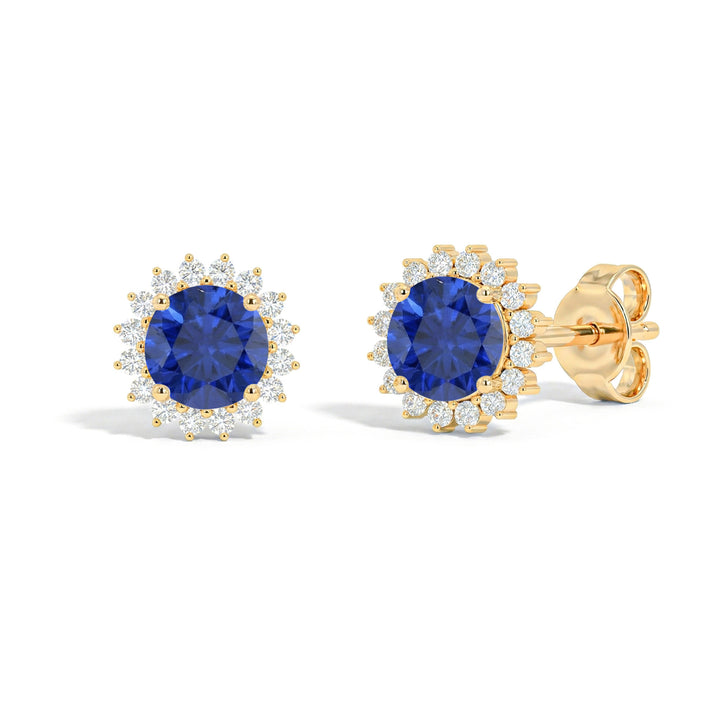 Blue Sapphire Round Halo Stud Earrings in Yellow Gold Plated 5 MM 1.3ct