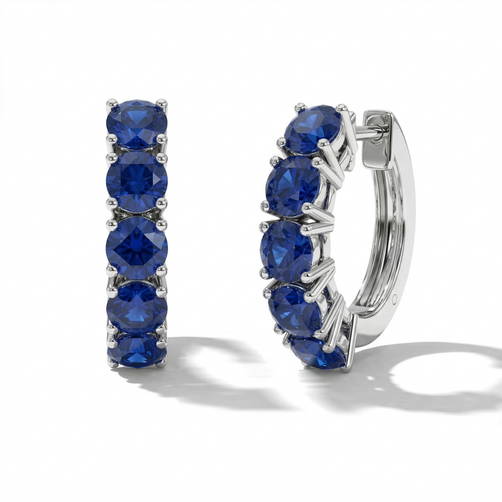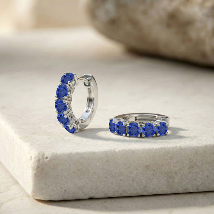 Blue Sapphire Round Hoop Earrings in 925 Sterling Silver 3MM 3ct