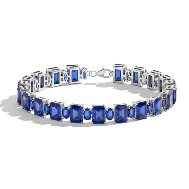Blue Sapphire Multi Shape Tennis Bracelet in 925 Sterling Silver 15.65 CT