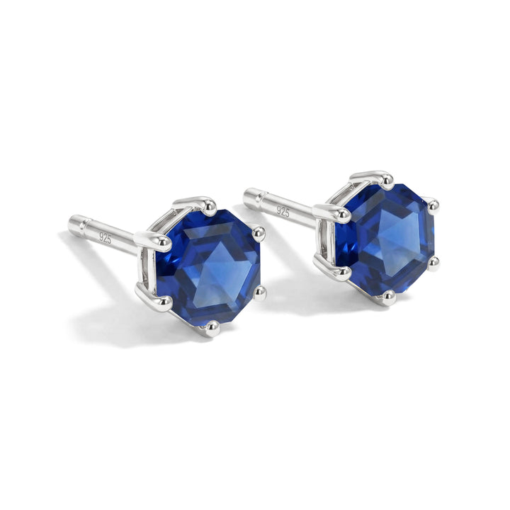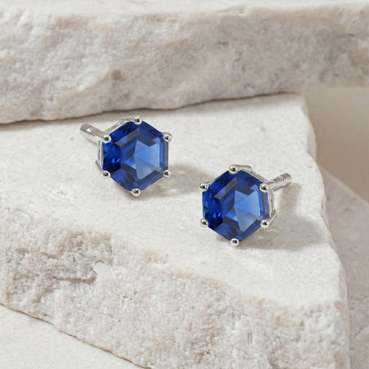 Blue Sapphire Hexagon Stud Earring in 925 Sterling Silver 6 MM 2ct
