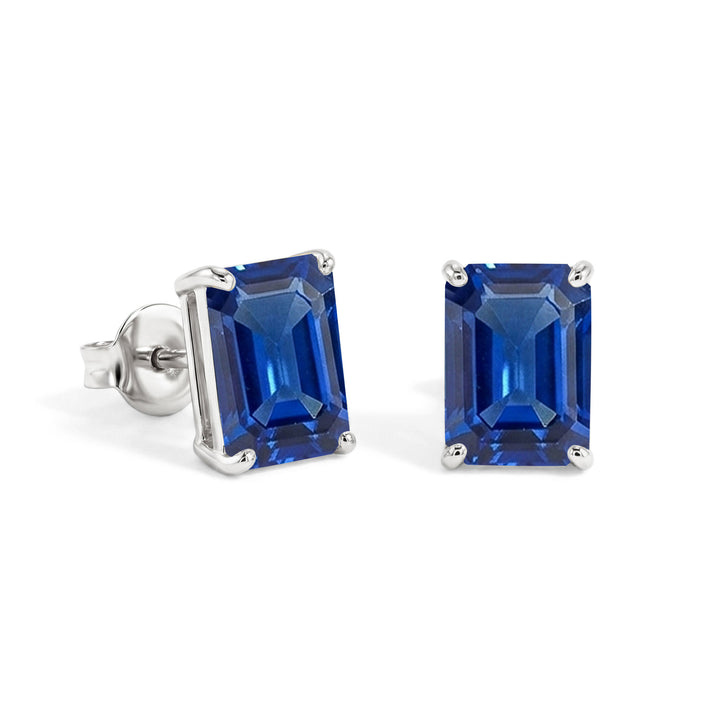 Blue Sapphire Octagon Stud Earring in 925 Sterling Silver 6MM 2ct.
