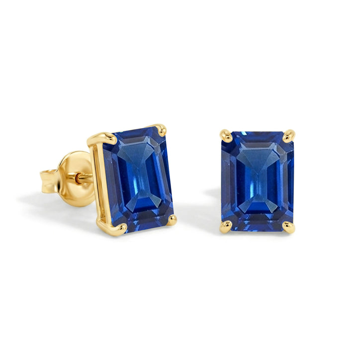 Blue Sapphire Kite Stud Earrings in Yellow Gold Plated 6x4 MM 1ct