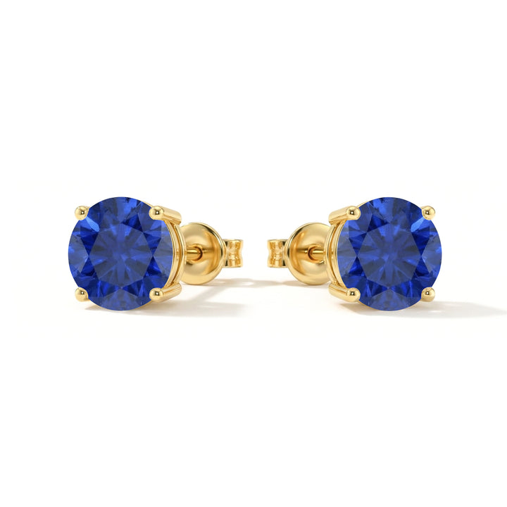 Blue Sapphire Round Stud Earrings in Yellow Gold Plated 3 MM 1.20ct