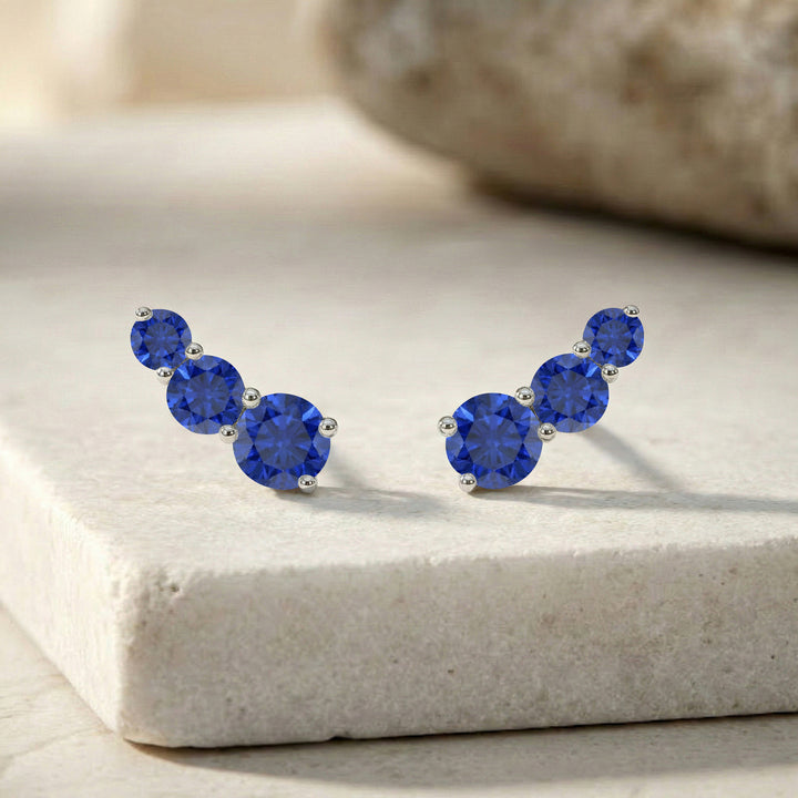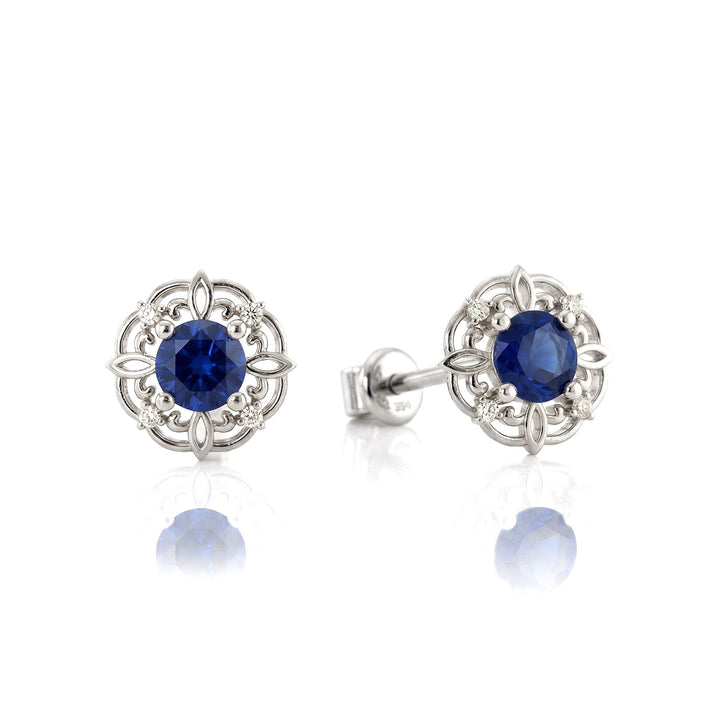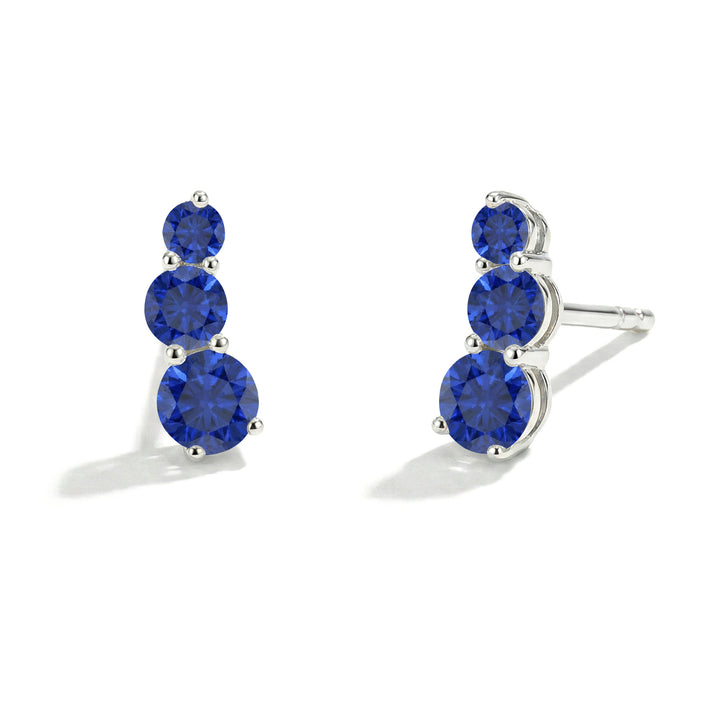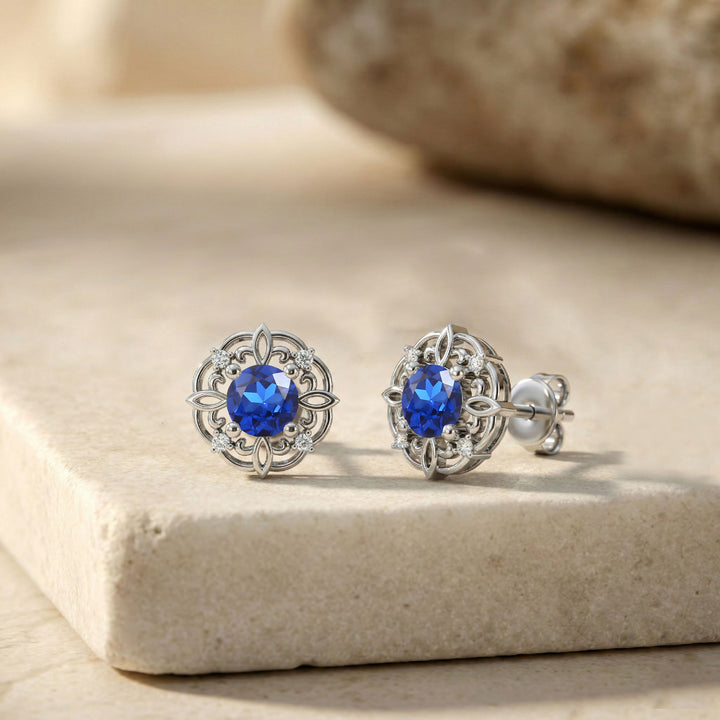 Blue Sapphire Round Stud Earrings in 925 Sterling Silver 3 MM 1.20ct