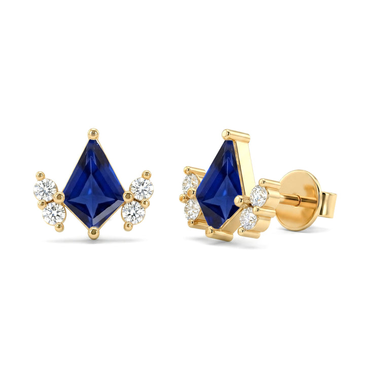 Blue Sapphire Kite Stud Earrings in Yellow Gold Plated 7x5 MM 1.50ct