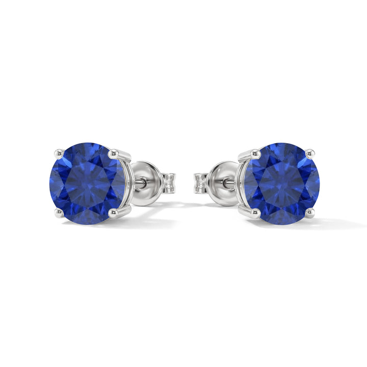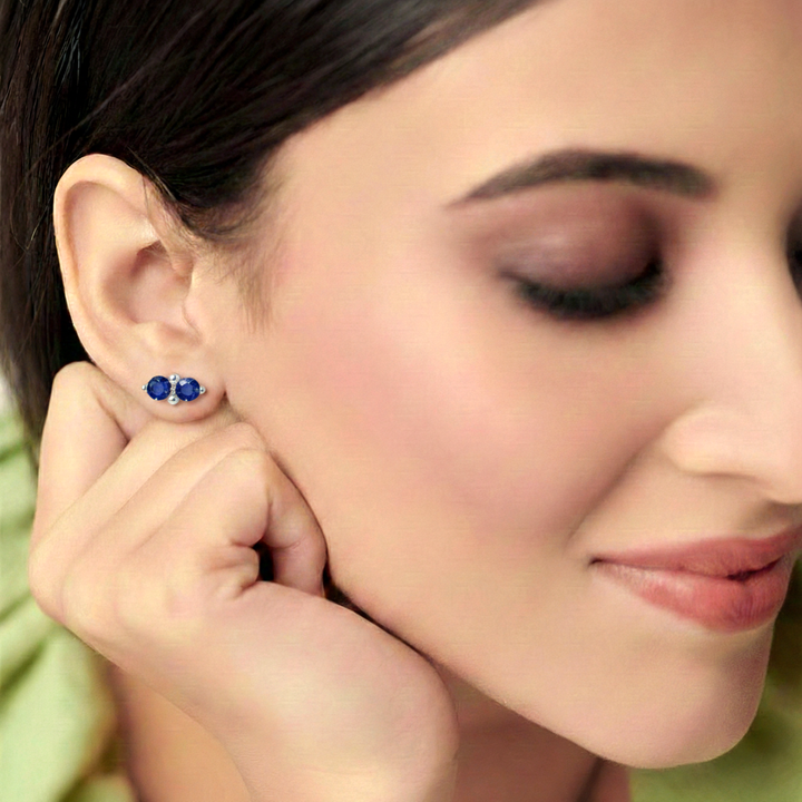 Blue Sapphire Round and Oval Stud Earring in 925 Sterling Silver 6 MM 5-ct.