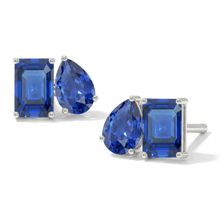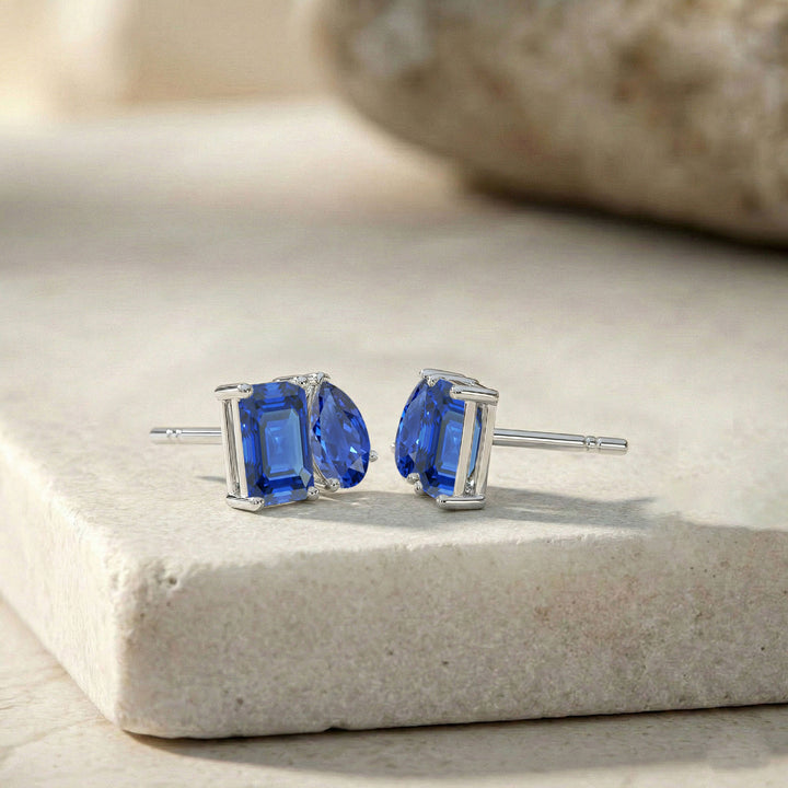 Blue Sapphire Pear and Octagon Stud Earrings in 925 Sterling Silver 6*4MM 2ct