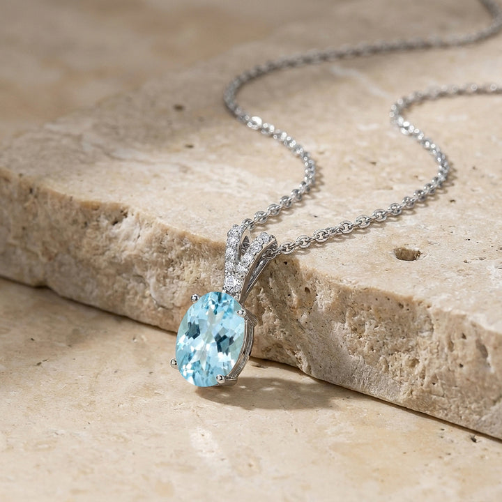 Aquamarine Solitaire Pendant Necklace in 925 Sterling Silver 1.2ct