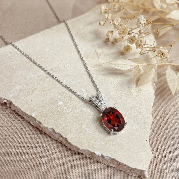 Natural Garnet Solitaire Pendant Necklace in 925 Sterling Silver 1.2ct