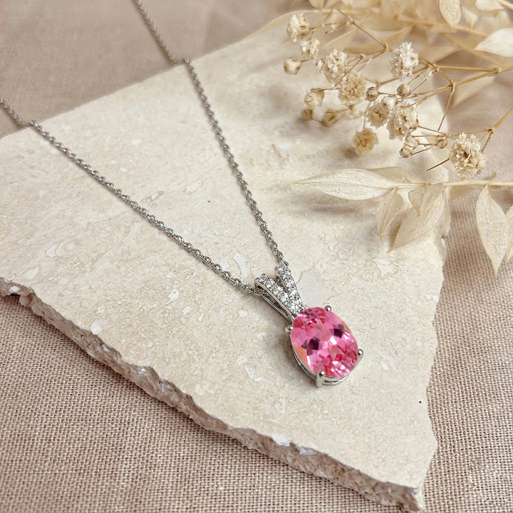 Pink Tourmaline Solitaire Pendant Necklace in 925 Sterling Silver 1.2ct